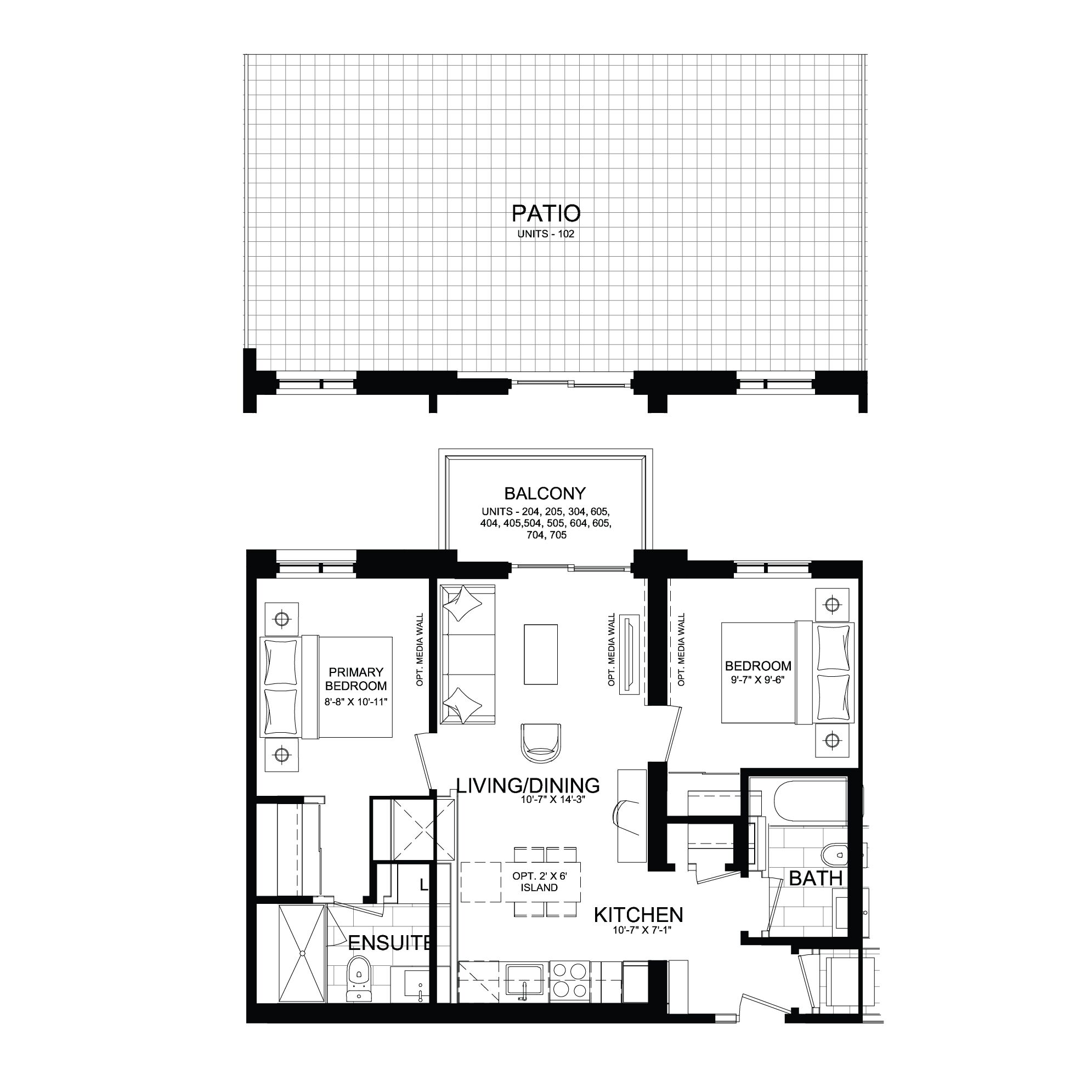 - Appliance Package: Stainless steel appliances included based on suite size.